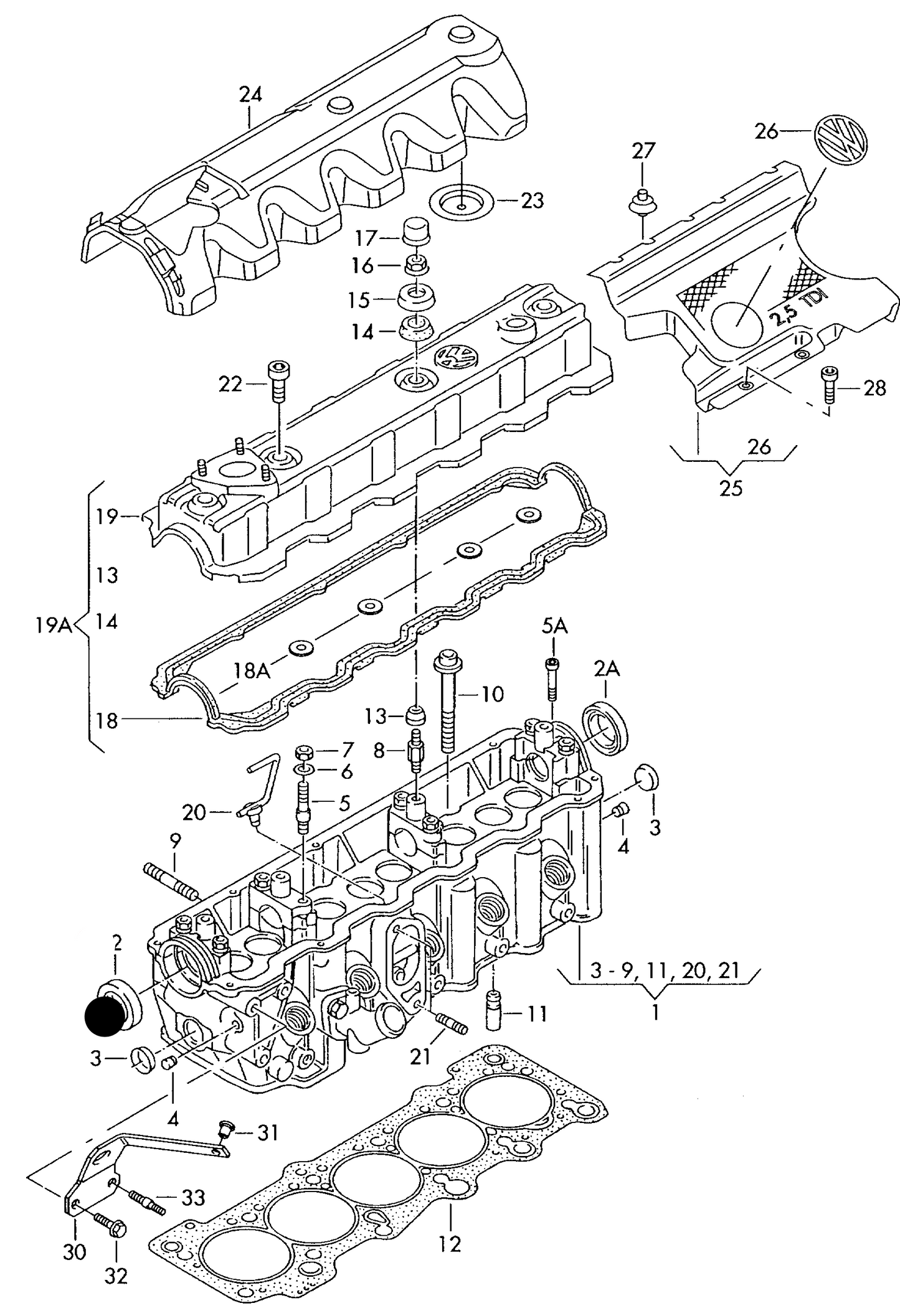 | 2.5TD TDI | D 5252 T | 10V OHC | 2460 cc | FWD, MTM + ATM | Mar 2000 | Mar 2002 | |